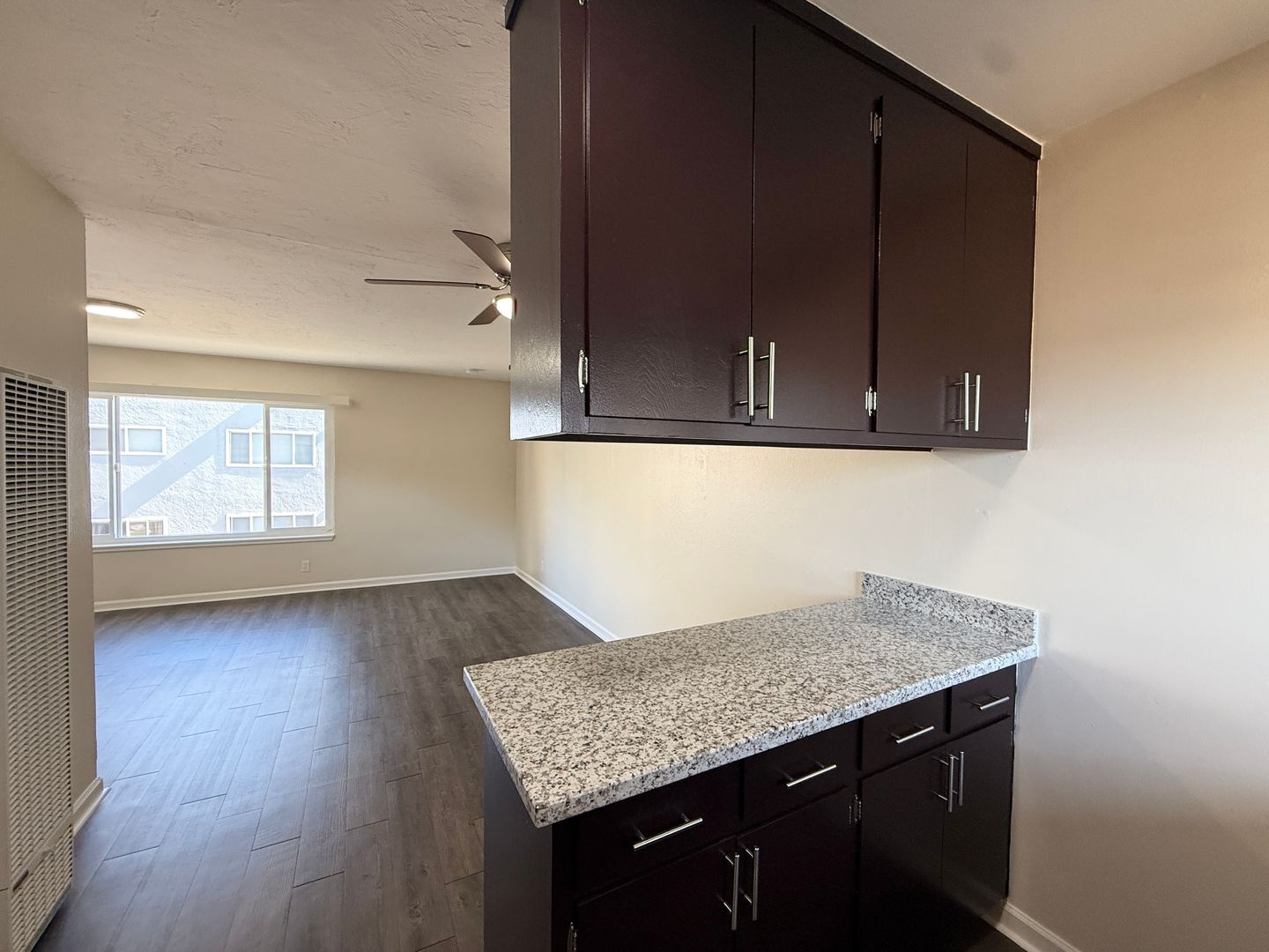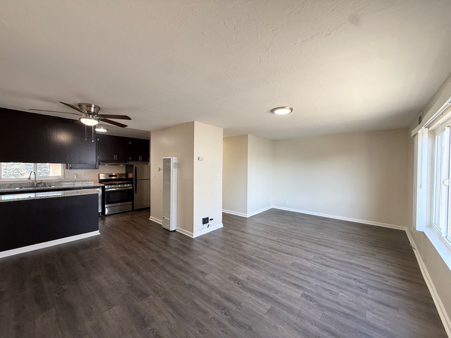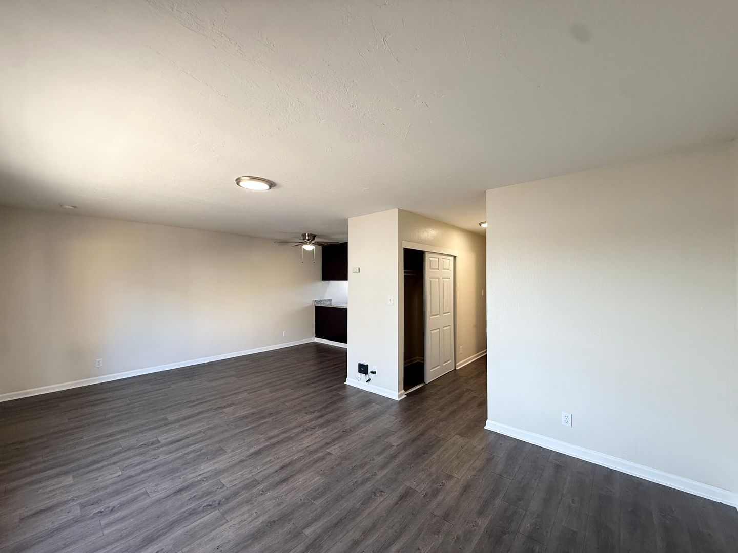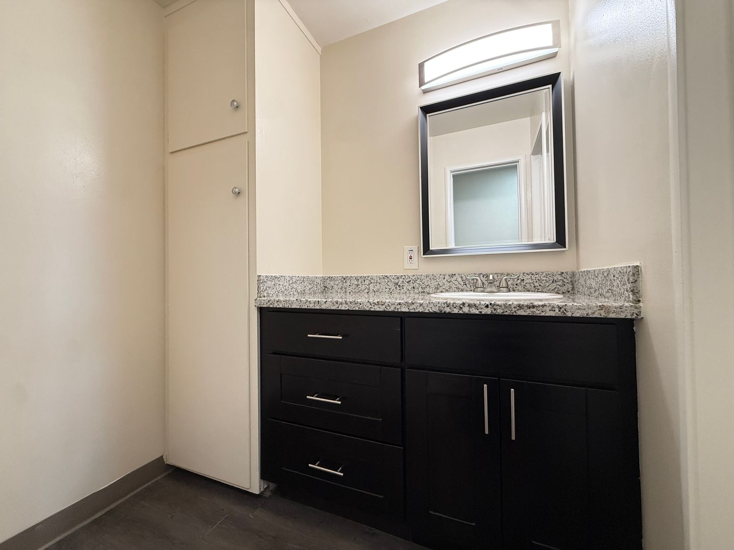 - Wood-like vinyl flooring throughout.