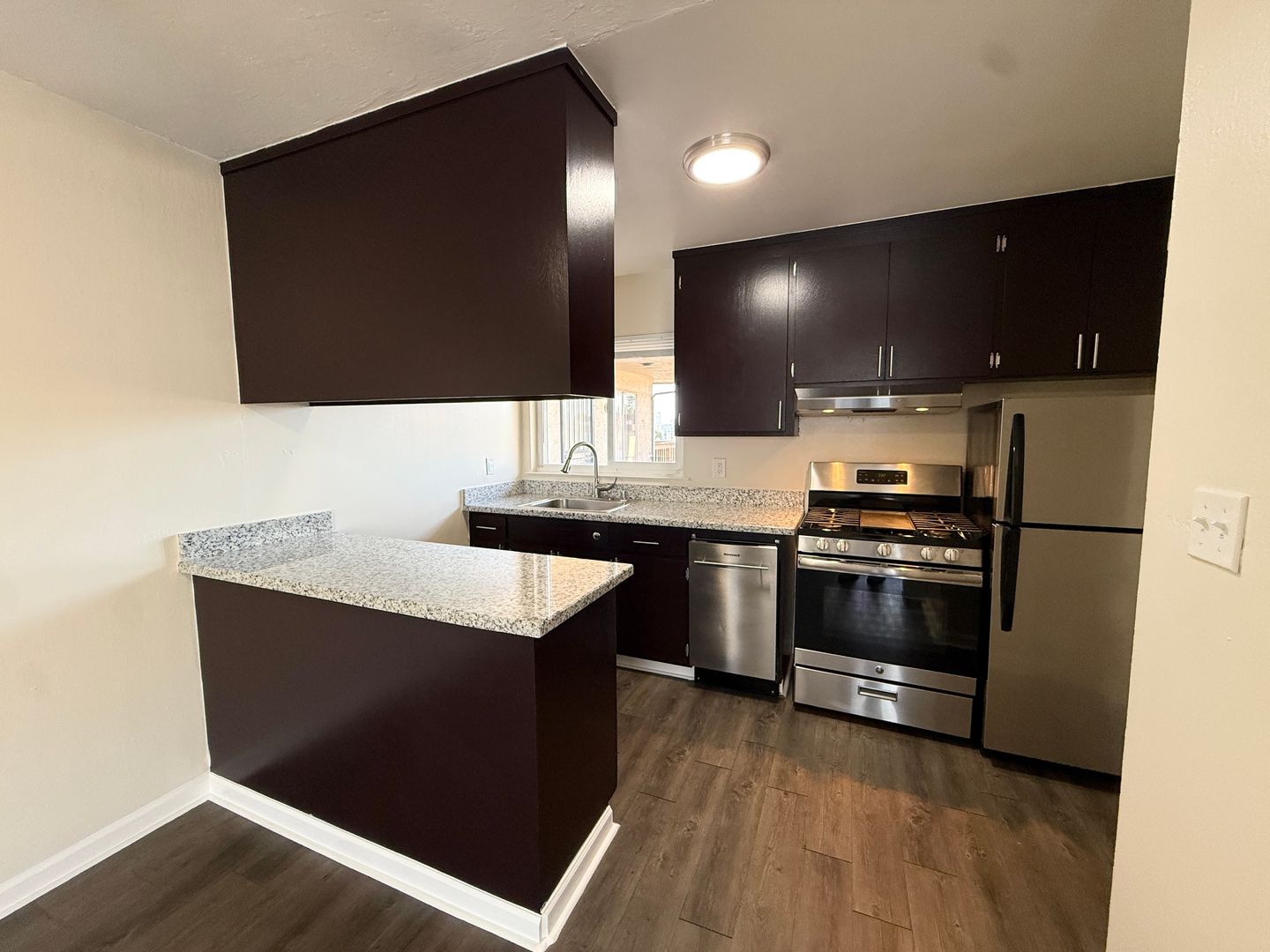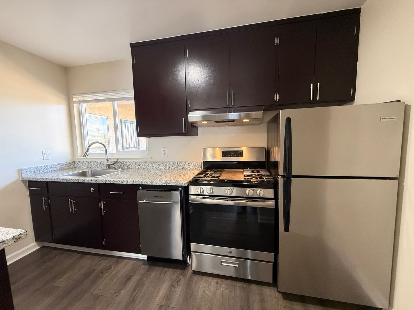 - Updated stainless steel range, rangehood, and refrigerator and dishwasher!