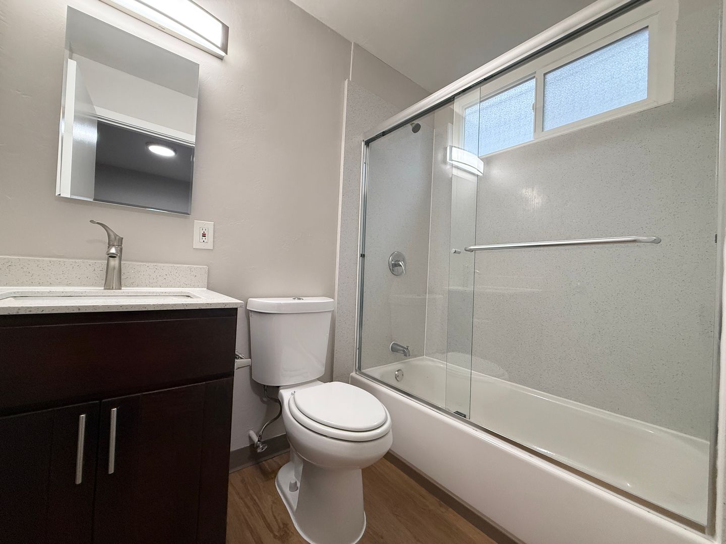 -Renovated bathroom.