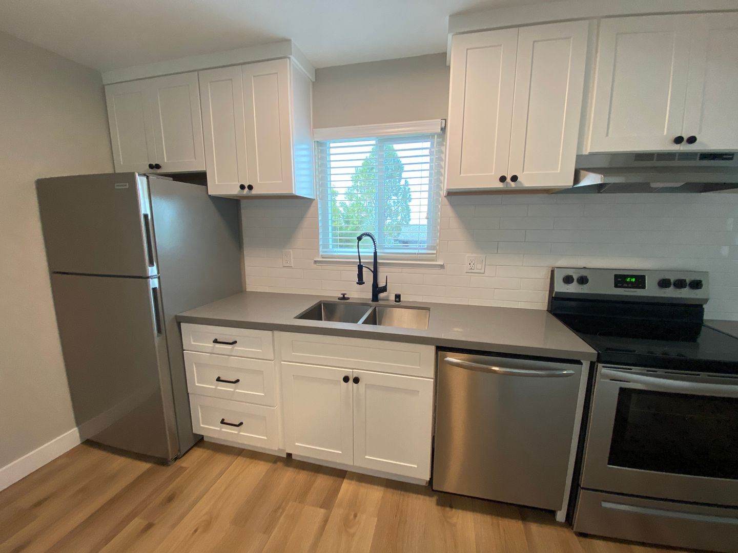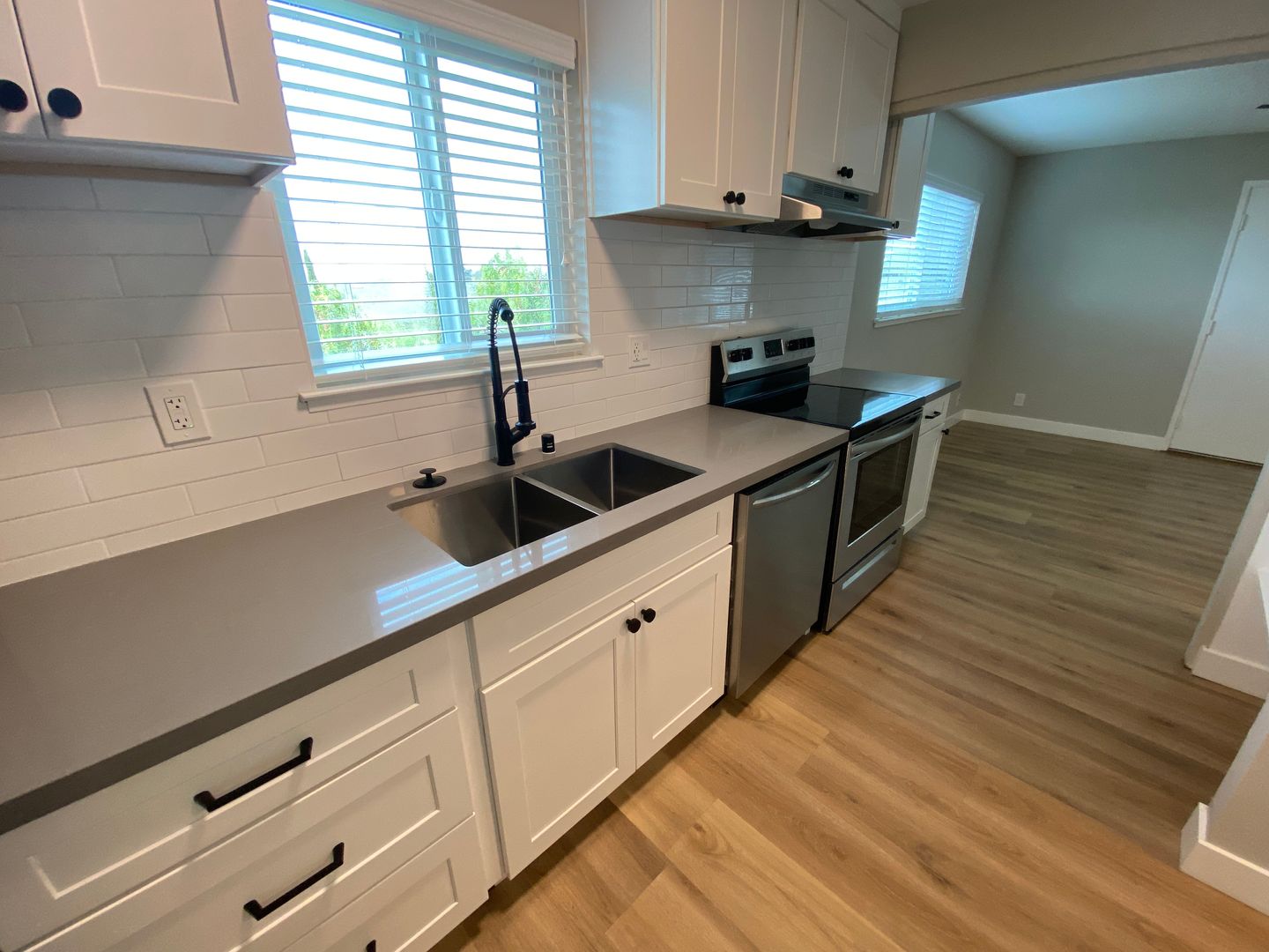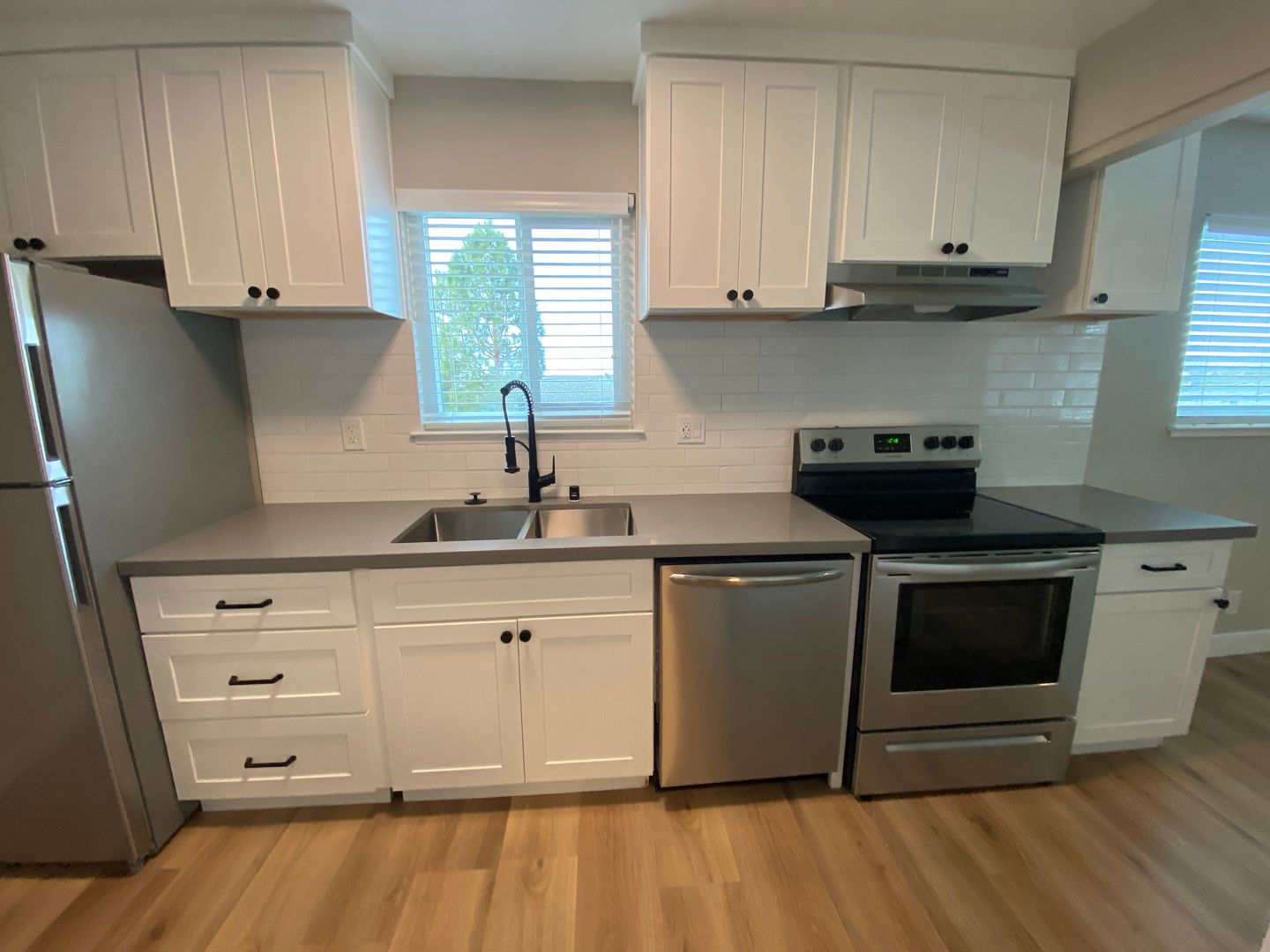 · Remodeled kitchen cabinets, quartz countertops, and backsplash.