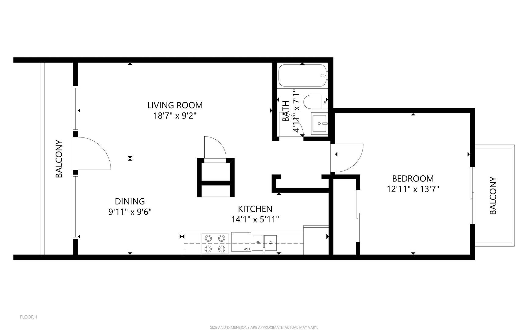 1 bedroom 1 bath $2,095/month, $600 deposit