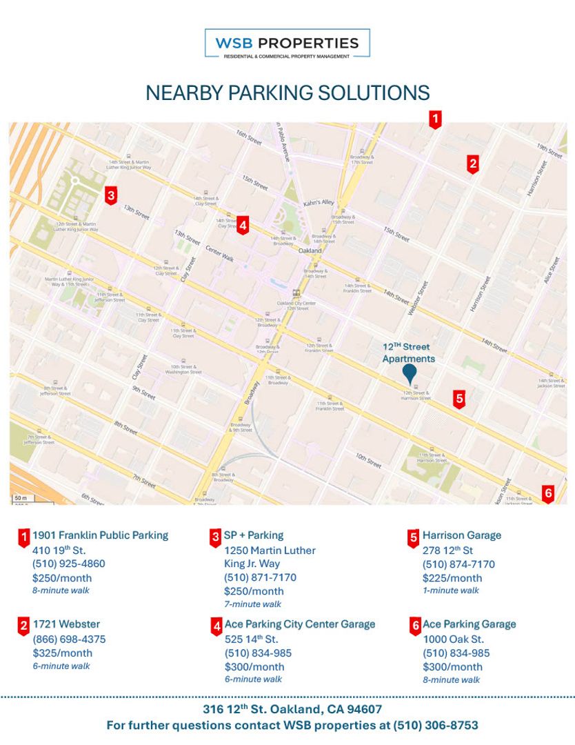 The location has a 100/100 walkability score! The community is 2 blocks away from the 12th Street BART Station! There is a secure bike storage room in the our building. There are several affordable parking garages nearby, and is only a 3 minute drive from both Freeway 580 & 880.