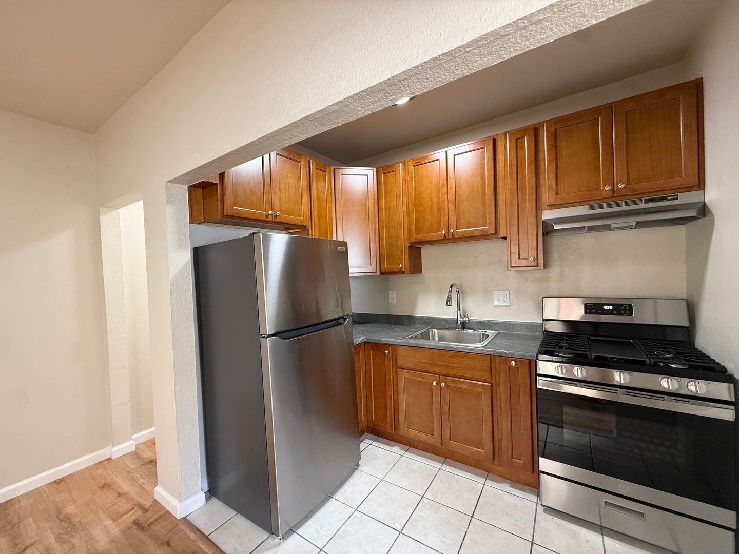 - Wood-like vinyl flooring in the kitchen, new carpet in the bedrooms.