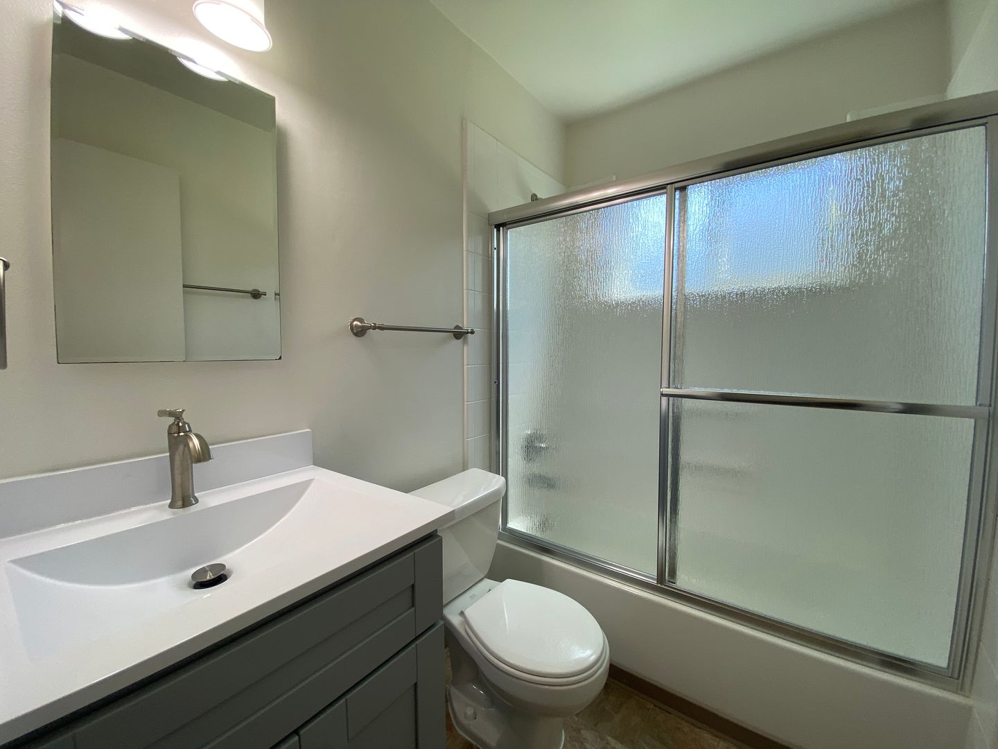 · LVT flooring in the kitchen, living room, hallway, and bedroom.