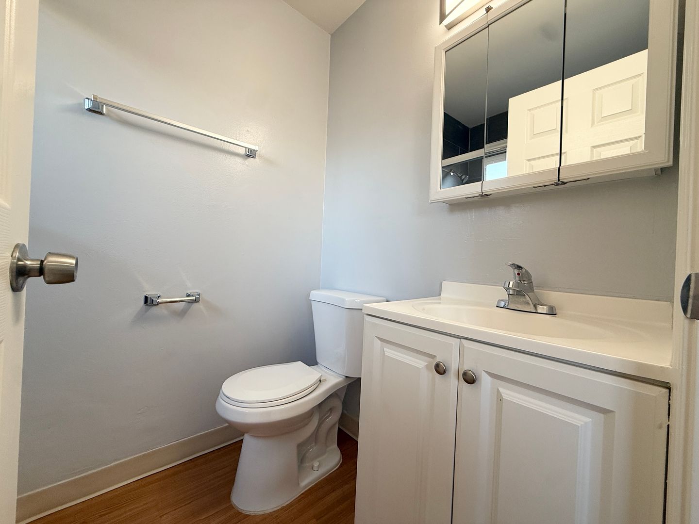 -Renovated bathroom.