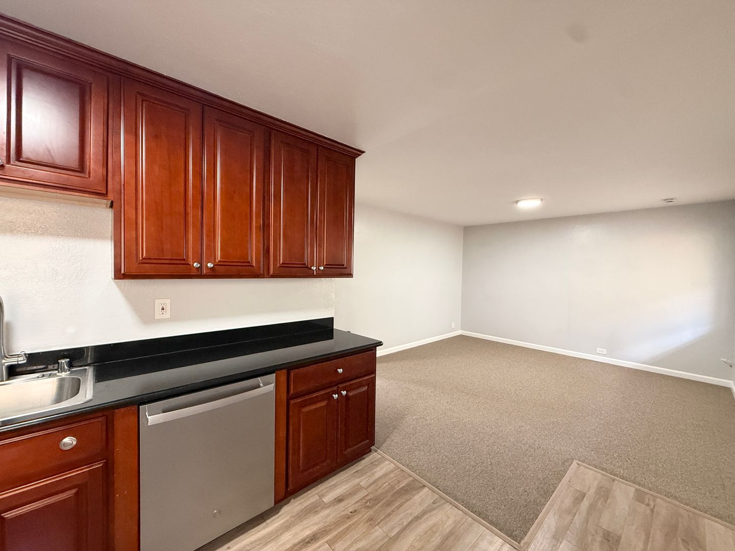 - Plank flooring throughout main area. New carpeted bedrooms.
