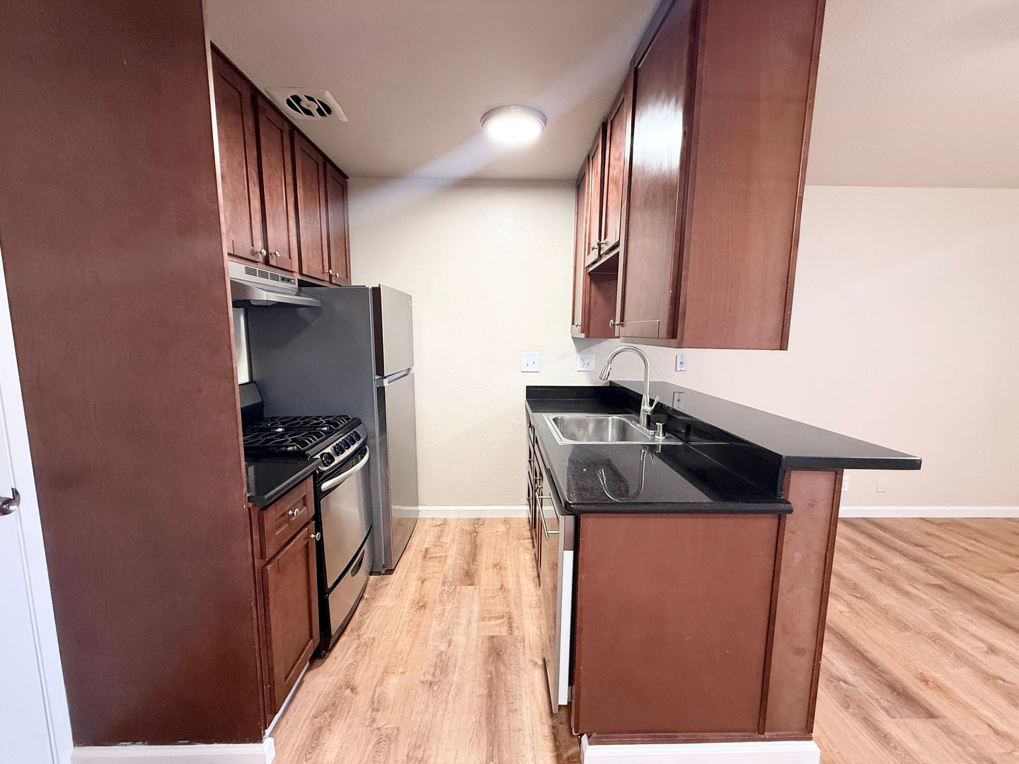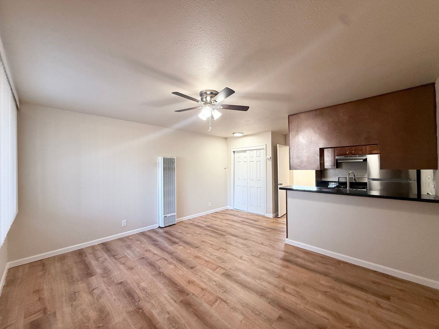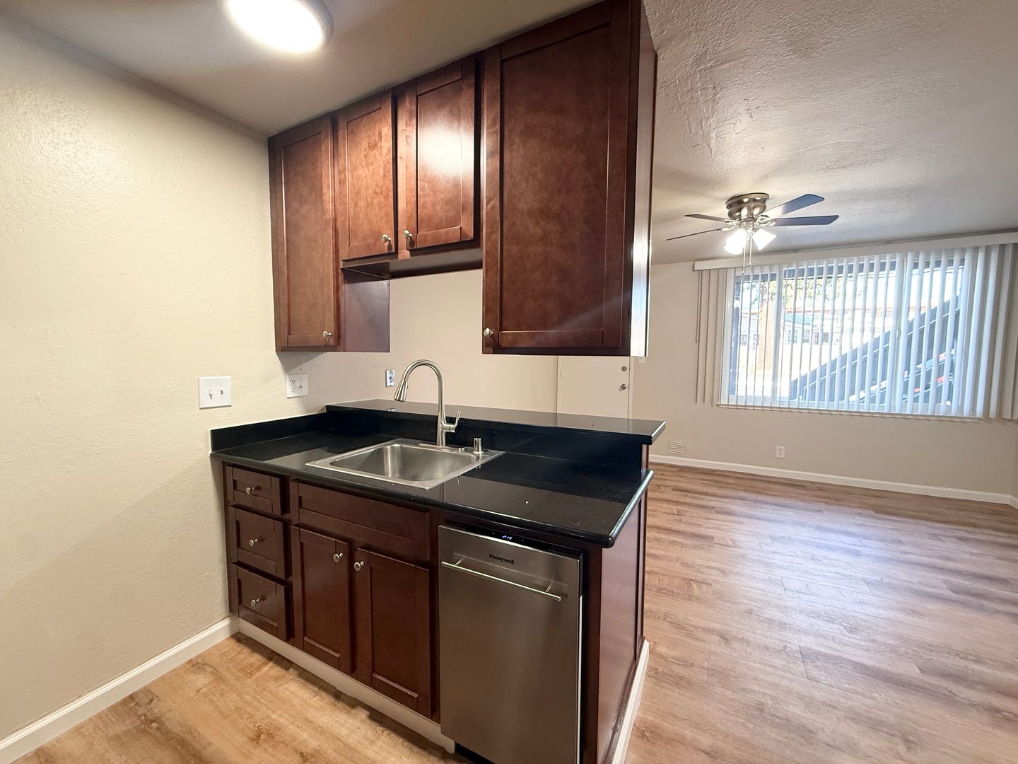 -New wood flooring in the kitchen, living room, and bath. New carpet in the bedroom!