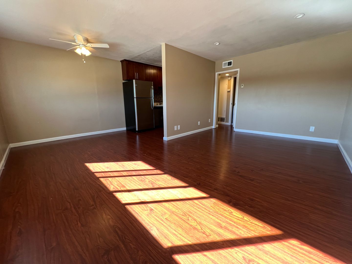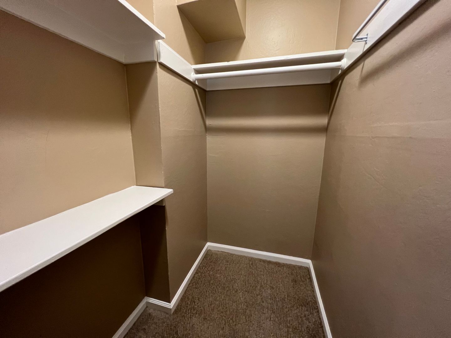 - Wood-like LVT flooring in common areas. Carpet in the bedroom.