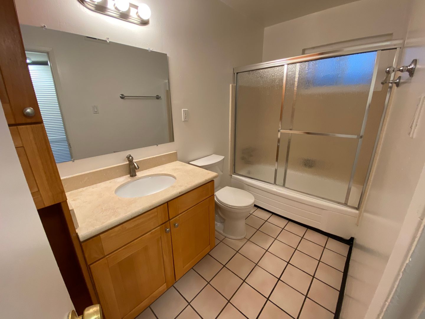 - Updated bathroom features plentiful storage.